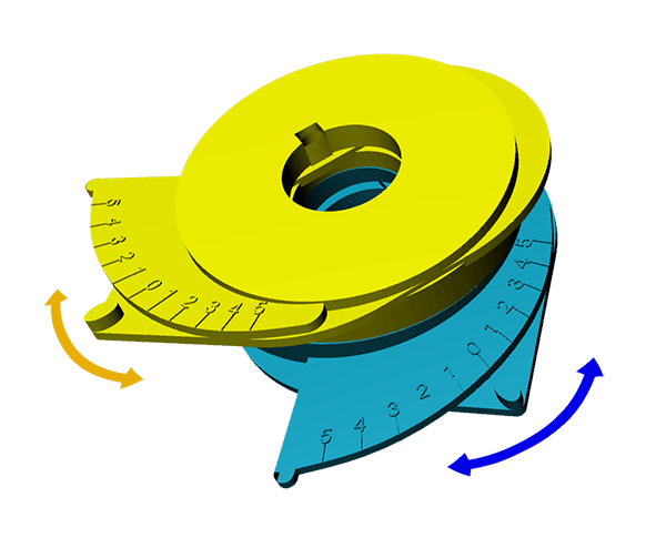 5. Slide blue pitch disc with scale up against last yellow component, either as shown, or rotated by 180° for opposite side of the boat. Lubricate.